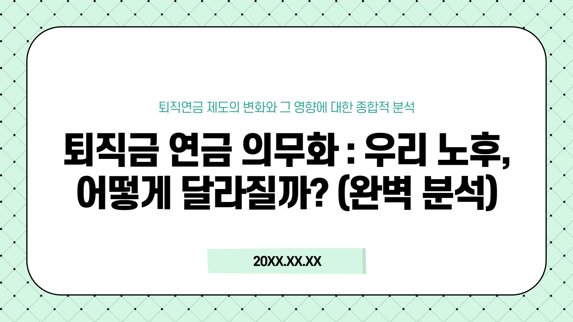 퇴직금 연금 의무화, 이제부터 어떻게 준비해야 할까요? 💡