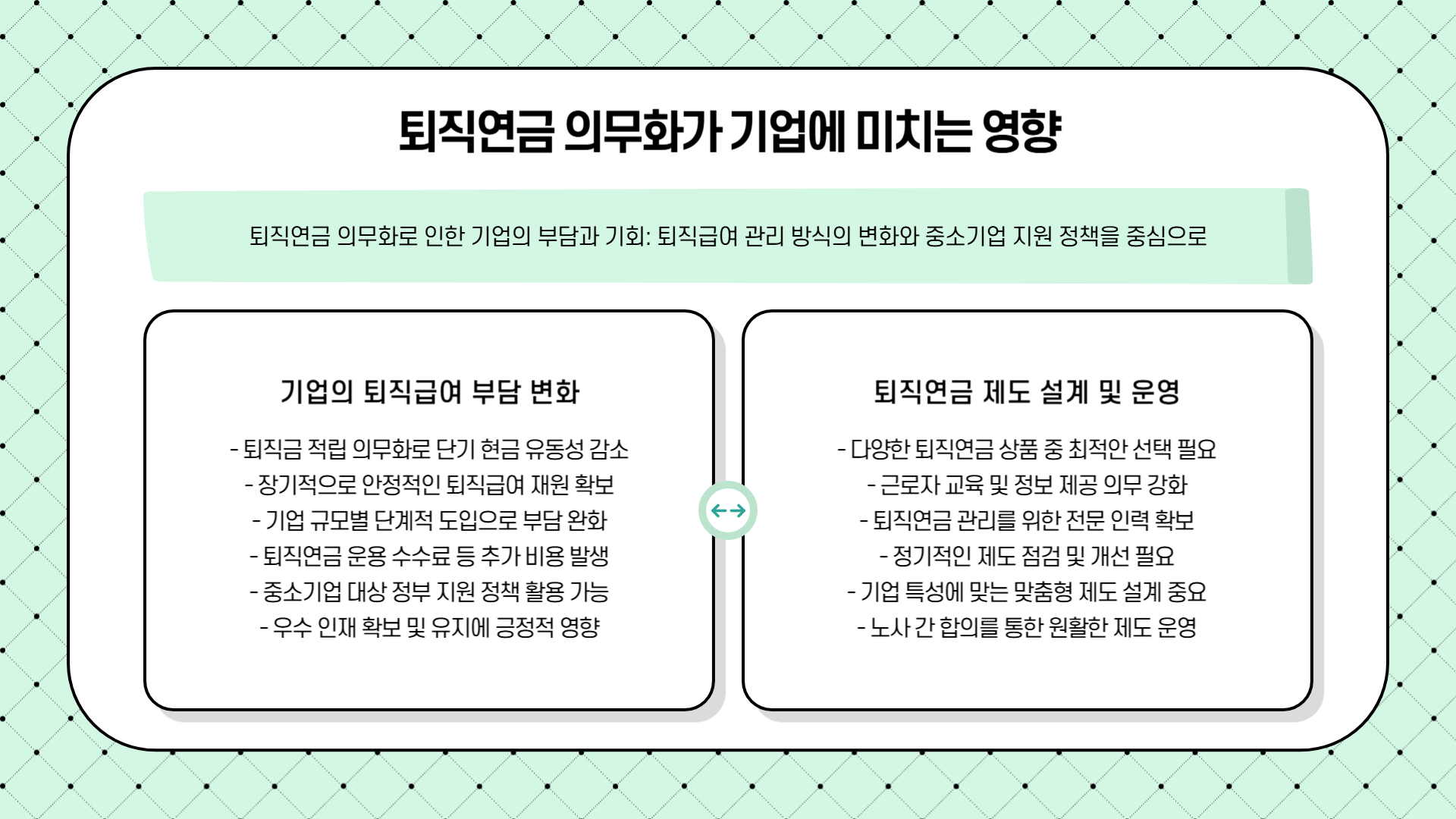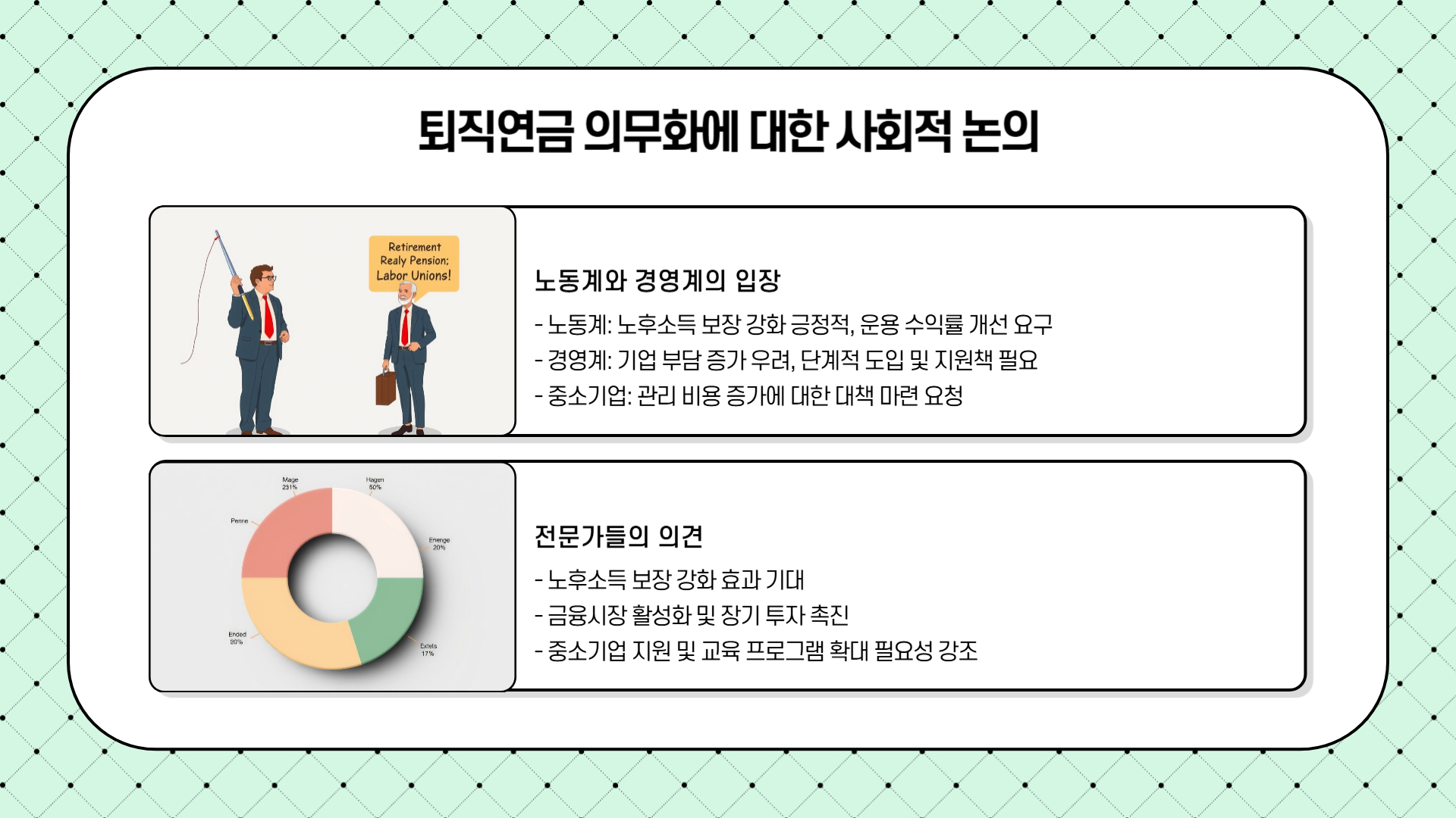 | 구분 | 현재 | 퇴직금 연금 의무화 (예상) |