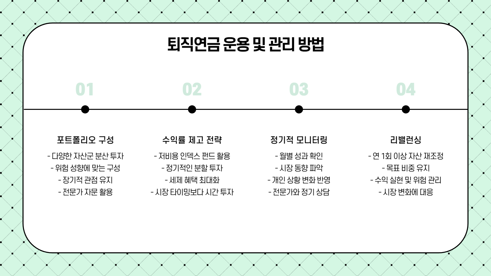 퇴직연금 운용은 원금 손실의 위험이 있어요. 무작정 고수익만 좇기보다는, 자신의 투자 성향을 정확히 파악하고 분산 투자를 통해 위험을 관리하는 것이 중요합니다. 전문가의 도움을 받는 것도 좋은 방법이에요!