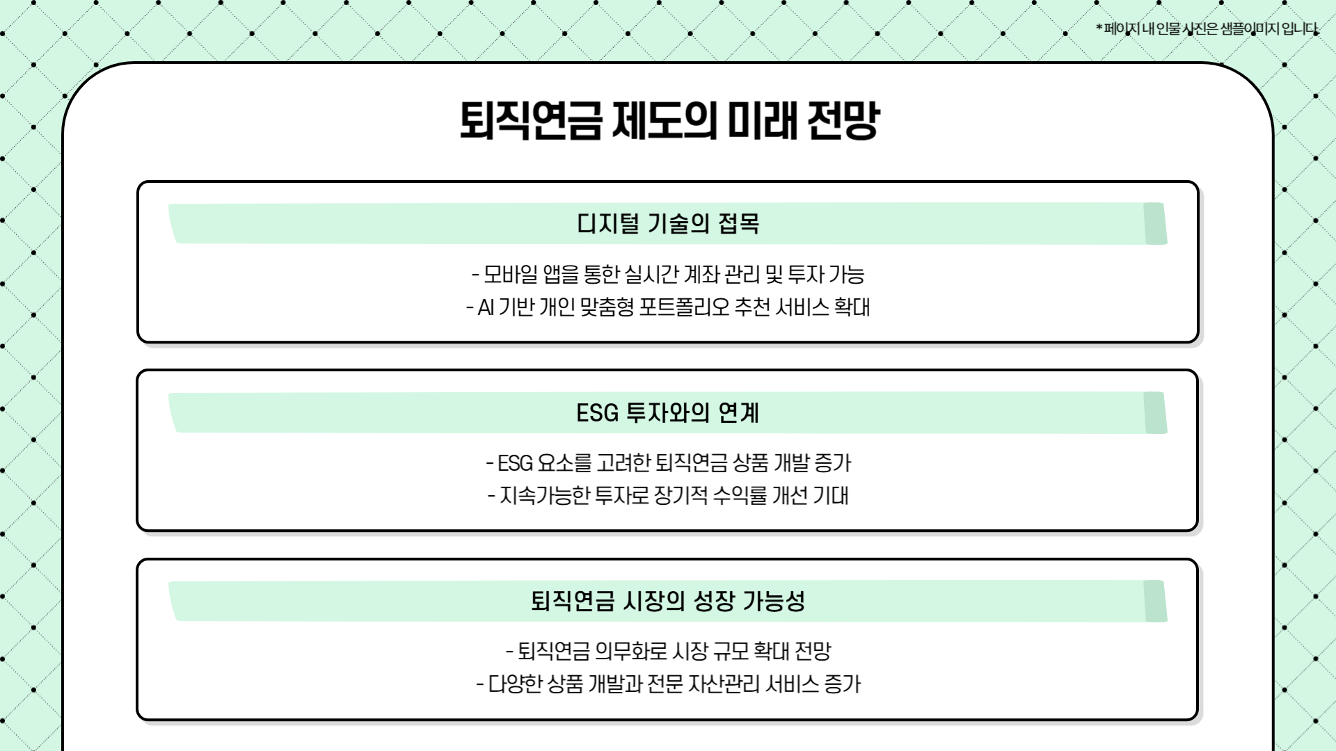 | 운용 주체 | DB형 회사, DC형 근로자 | DC형 비중 확대, 근로자 운용 중요성↑ |