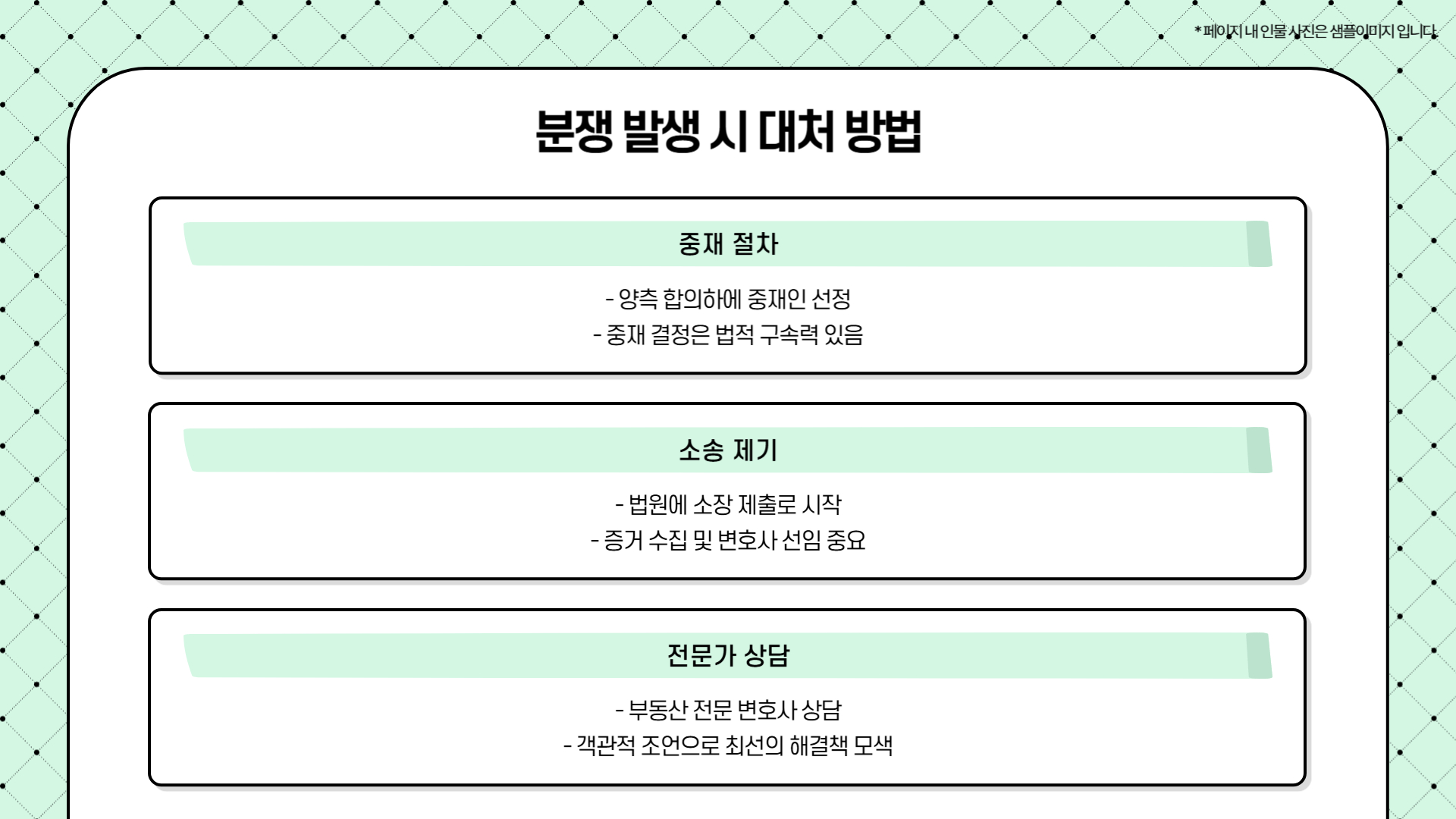 | 4단계 | 중도금 지급 (해당 시) | 중도금 영수증 확인, 계약서에 따라 지급 |