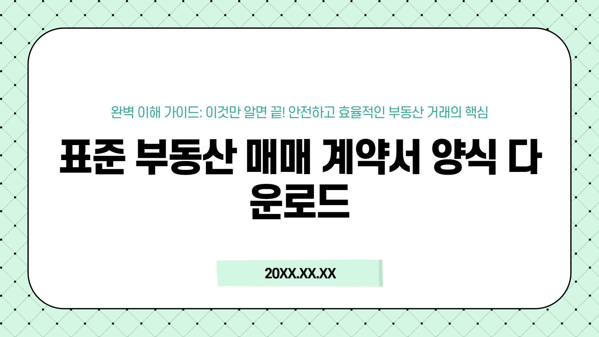 표준 부동산 매매 계약서, 왜 중요할까요? 📝